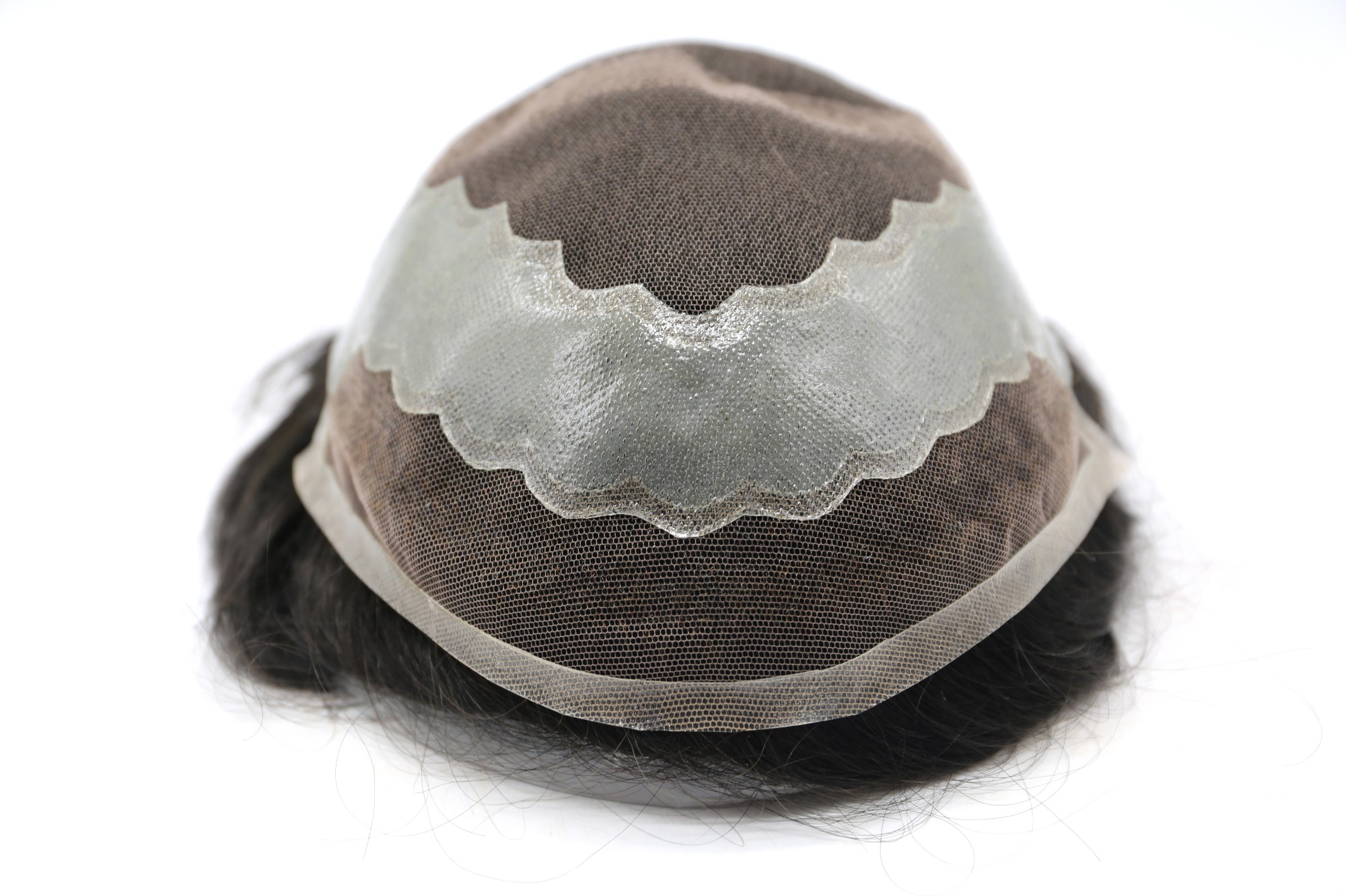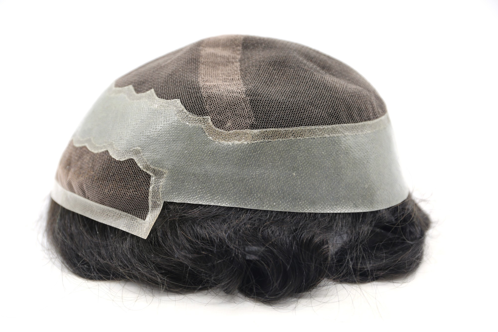 男士头发系统有法国蕾丝底座,周围有聚皮肤,外加法国蕾丝正面。